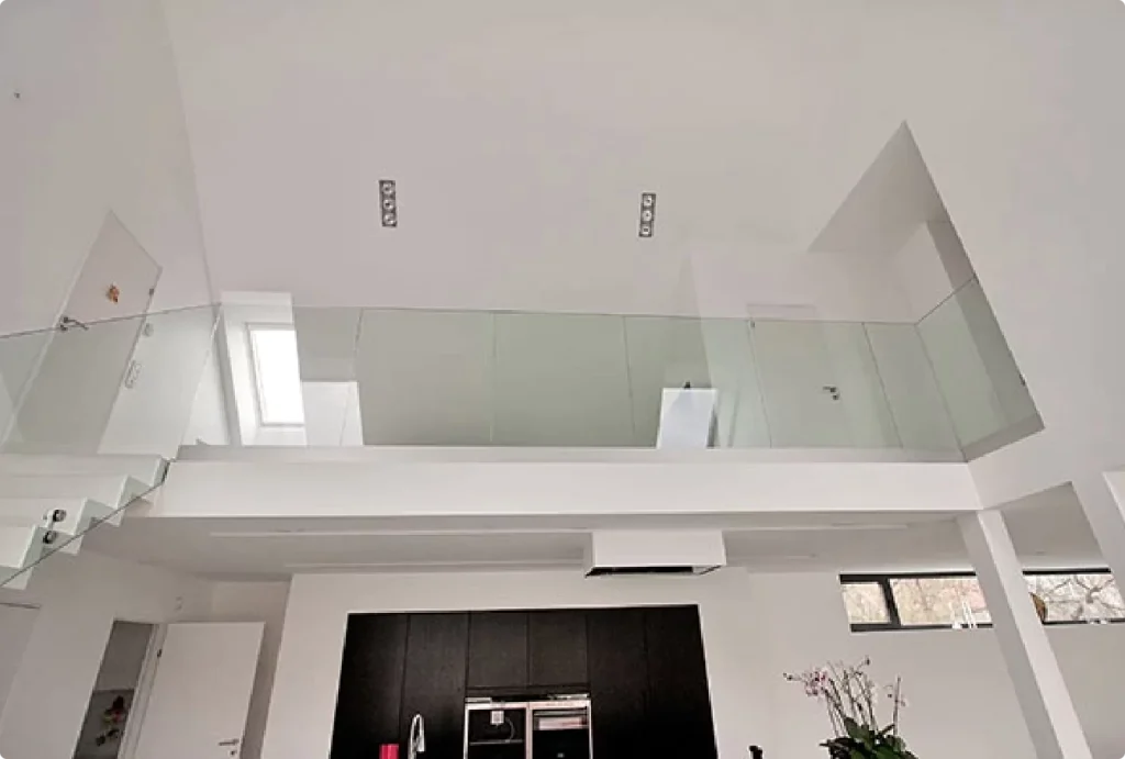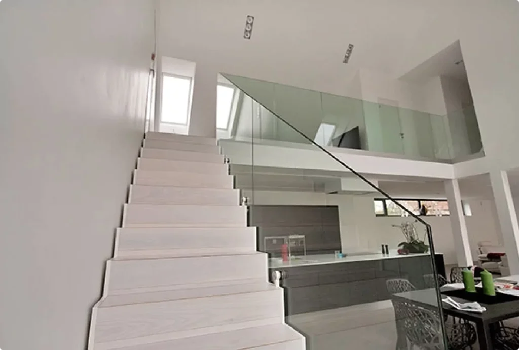 Till skillnad från traditionella räcken bevarar glasräcken ljus och rymd. Det gör att hemmet känns större, ljusare och mer öppet – särskilt i miljöer där man vill framhäva arkitektur och utsikt. I denna villa i Klagshamn installerade vi räcken vid både trappa och en upphöjd gång.